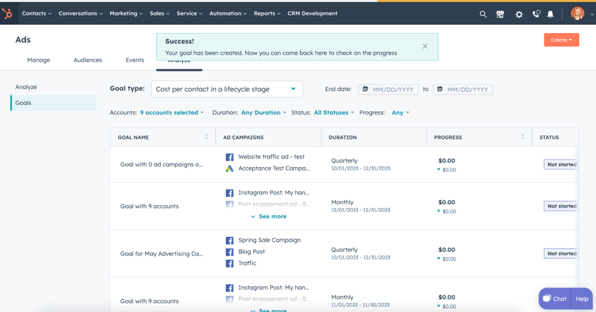Within HubSpot, you can keep track of these important Ad goals alongside all your other important reports.